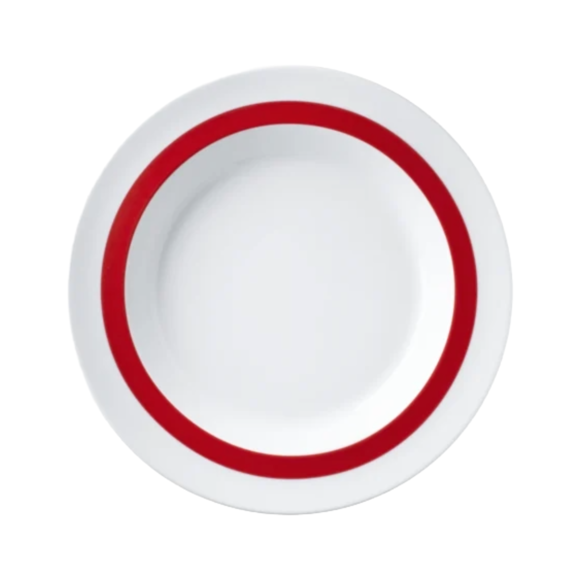 En ergonomiskt utformad halvdjup tallrik ur serien Active från Langenthal, med röd kant som ger tydlig kontrast och underlättar användning. Tallriken har ett utformat stopp mellan innerkant och botten som gör det enklare att samla upp maten på ett säkert sätt. Den konkava kanten ger ett bra grepp och bidrar till stabil hantering. Den intelligenta konstruktionen gör tallriken stapelbar, lätt att transportera och praktisk i daglig användning.
