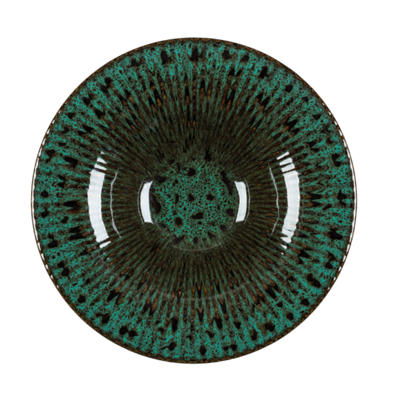 En elegant tallrik i serien Daisy från Blocho. Tallriken har en vacker design med en blank och fin melerad dekor i grönt och svart både på ovansidan och undersidan. Ett användbart och snyggt tillskott till restaurangdukningen.