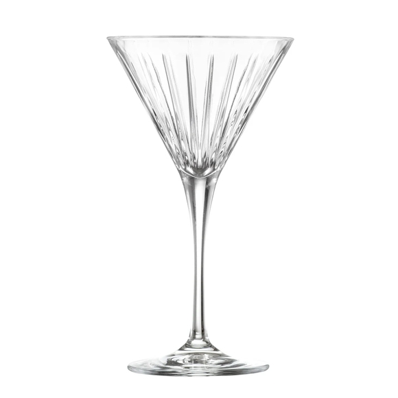 Detta martiniglas från RCRs serie Timeless utstrålar lyx och flärd. Glaset är gjort i ekologiskt kristallglas som enkelt kan återvinnas, vilket gör detta till ett självklart val för restaurangen som värnar om stil och hållbarhet. Designen liknar ett klassiskt martiniglas med en trumpet formad kupa. Materialet är slittåligt och bidrar med en yta som skiner på ett mycket tilltalande vis. Detta sofistikerade glas är något man inte vill gå måste om i baren när drinkar ska serveras.
