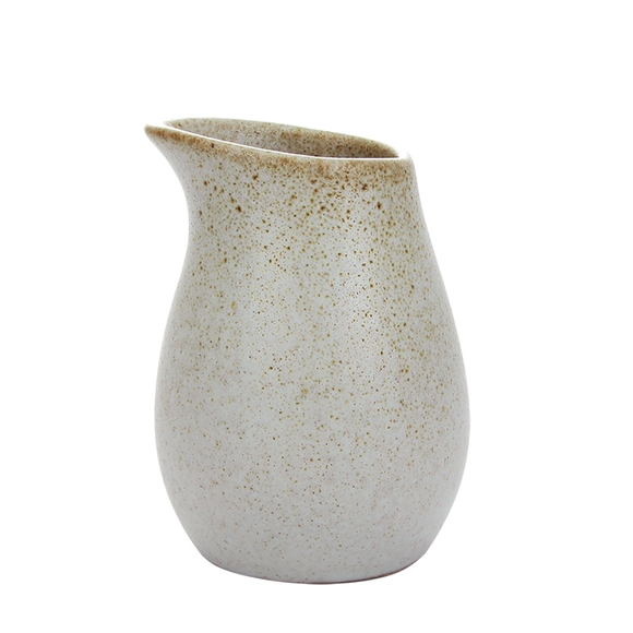 En rustik, handgjord mjölkkanna i färgen Sandy Beige från Aidas serie Raw. Kannan är tillverkad av dubbelbränt stengods för extra hållbarhet, samtidigt som den reaktiva glasyren och dess unika, råa utseende ger ett karaktärsfullt utseende. Perfekt för servering av mjölk till kaffet på restauranger, caféer och hotell.