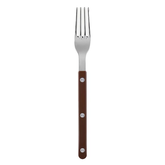 Matgaffel i färgen Chocolate från Sabre Paris bestickserie Bistrot Solid. Besticken är tillverkade av rostfritt stål med lång hållbarhet och har eleganta akrylskaft, som dessutom finns i flera olika färger. Perfekta bestick för restauranger, caféer och hotell.