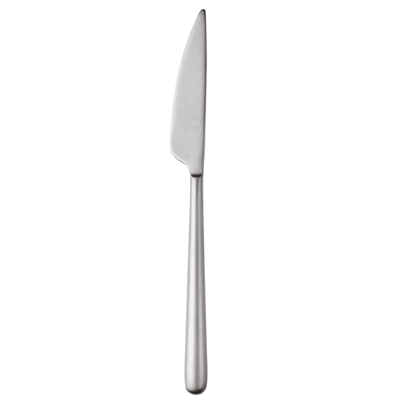 En bordskniv med rustikt utseende i rostfritt stål från Mepras kollektion Linea Ice. Med en behaglig form och borstad yta skapar skeden en trivsam miljö i restaurangen och höjer gästernas upplevelse. Den borstade ytan har dessutom förmågan att maskera repor och märken som kan uppstå vid daglig användning och garanterar därmed lång hållbarhet. Ett måste för restauranger, barer och caféer som söker en bordskniv med smakfull design utan att kompromissa med kvaliteten.