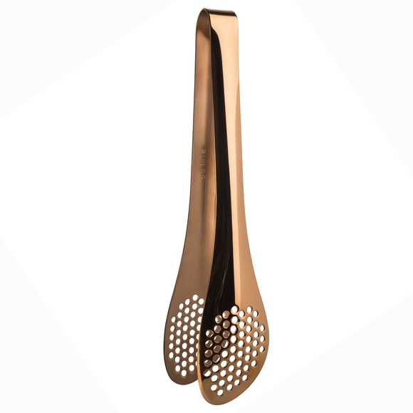 En snygg och praktisk salladstång från APS med en blank kopparfärgad finish. Tillverkad av rostfritt stål med små hål vilket gör att vätska enkelt kan rinna av. Tången passar utmärkt för uppläggning av sallad och olika tillbehör på restaurang och buffé!