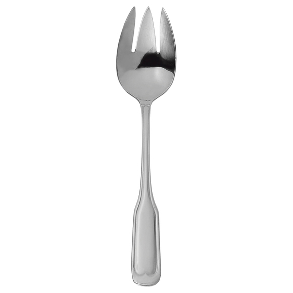 En snygg och praktisk serveringsgaffel från BBM i serien Admiral. Gaffeln har ett bekvämt handtag och en större framdel som liknar en kombination av sked och gaffel med tre tänder. Detta gör det mycket enkelt att skopa upp olika tillbehör och sallader utan spill eller söl. Ställ fram gaffeln på bordet när större sällskap ska dela på mat av olika slag.