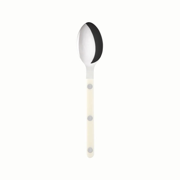 Dessertskeden från Sabre Paris i serien Bistrot Solid har en elegant, tidlös design i den mjuka färgen Ivory. Tillverkad med ett högkvalitativt akrylhandtag och skedblad i rostfritt stål, är den väl lämpad för professionell användning i restaurang- och serveringsmiljöer. Perfekt för att servera smakfulla desserter, kompletterar denna dessertsked en stilfull och enhetlig bordsdukning när den kombineras med andra bestick från samma serie.