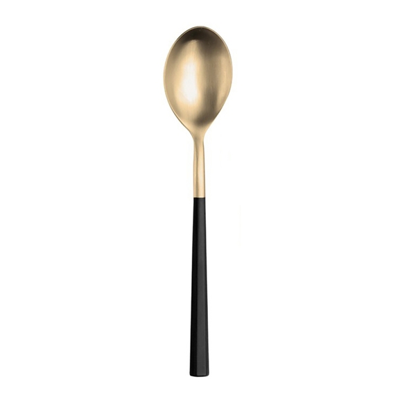 En lyxig och elegant dessertsked från Pintinox kollektion Hive. Kontrasten mellan det svarta handtaget och den guldiga toppen ger skeden en unik design som passar perfekt på diverse restauranger som vill ge sin dukningen en modern och exklusiv look. Låt dina gäster avsluta sin middag på bästa sätt, med en utsökt dessert som serveras med denna exklusiva sked.