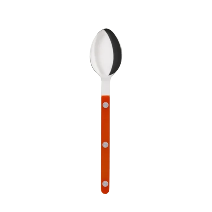 Imponera på gästerna med eleganta dukningar och serveringar av smakfulla förrätter med Sabré Paris iögonfallande förrättssked från serien Bistrot Solid. Inspirerad av charmiga franska bistros och caféer, fångar denna bestickserie den traditionella atmosfären med en modern touch. Det orangea akrylhandtaget och de synliga nitarna ger en unik och stilfull framtoning som förhöjer dukningarna på ett mycket smakfullt sätt!