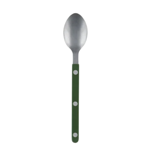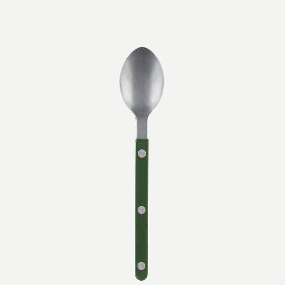Förrättssked med grönt skaft från Sabre Paris bestickserie Bistrot Vintage Solid. Seriens bestick är tillverkade av rostfritt stål med lång hållbarhet, medan de färgglada akrylskaften ger ett elegant och livfullt intryck. Ett utmärkt val för restauranger, caféer och hotell.