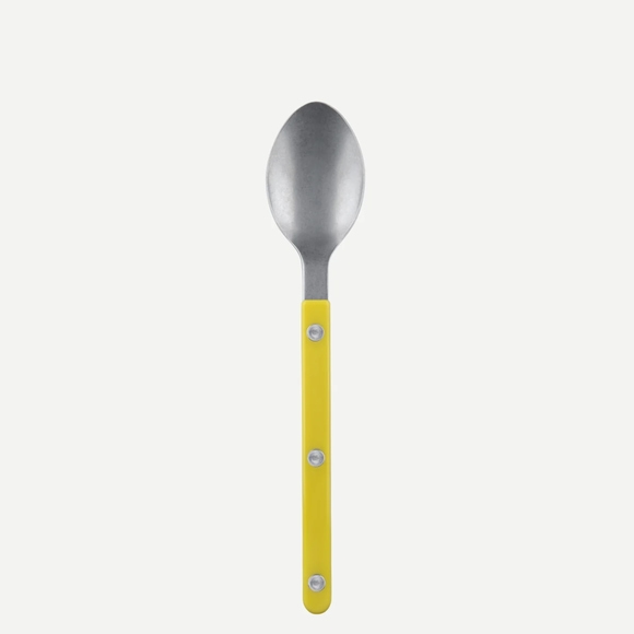 Förrättssked med gult skaft från Sabre Paris bestickserie Bistrot Vintage Solid. Seriens bestick är tillverkade av rostfritt stål med lång hållbarhet, medan de färgglada akrylskaften ger ett elegant och livfullt intryck. Ett utmärkt val för restauranger, caféer och hotell.