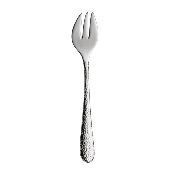 En snygg och unik ostrongaffel från WMFs kollektion Sitello. Gaffeln är i en mindre modell som som passar utmärkt att äta ostron med. Det vackra besticket har ett tilltalande handtag med en ”bubblig” yta som sticker ut och en främre del som är rundad. Detta bestick höjer alla dukningar med sin elegans och bör därför finnas på diverse restauranger och caféer.
