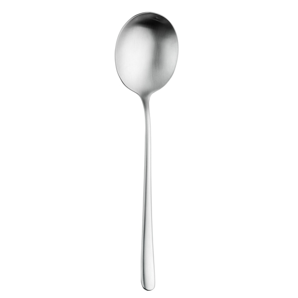 Soppsked från Pintinox bestickserie Sky Satin. Skedens stilrena design och matta yta passar utmärkt på både klassiska och moderna dukningar, samtidigt som det slitstarka materialet säkerställer långvarig hållbarhet. Perfekt på restauranger, caféer och hotell!