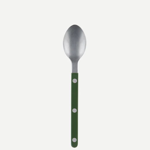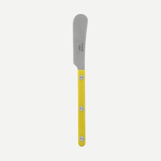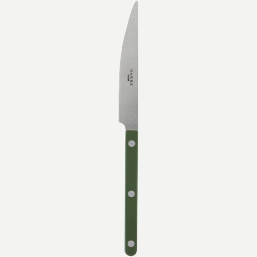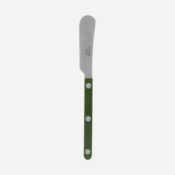 Smörkniv med grönt skaft från Sabre Paris bestickserie Bistrot Vintage Solid. Seriens bestick är tillverkade av rostfritt stål med lång hållbarhet, medan de färgglada akrylskaften ger ett elegant och livfullt intryck. Ett utmärkt val för restauranger, caféer och hotell.