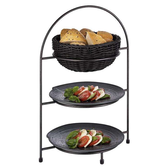 Ett klassiskt och rustikt serveringsställ från APS kollektion Industrial. Det användbara buffestället har plats för tre tallrikar med en maxdiameter på 27 cm. Ställningen är i svart metall vilket får den att smälta in på alla restauranger och caféer. Den är mycket smidig att transportera och använda vilket gör den passande överallt.