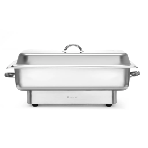 En elektrisk chafing dish i rostfritt stål ur Hendis serie Pollina, utvecklad för att hålla rätter jämnt varma vid bufféer och catering. Den justerbara temperaturregleringen säkerställer optimal serveringstemperatur, medan den integrerade lockhållaren ger smidig hantering under service. Levereras med en GN 1/1-behållare och är kompatibel med kantiner upp till 100 mm djup, vilket ger flexibel användning för många typer av rätter.