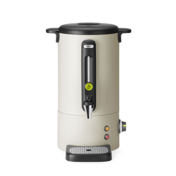 Denna hetvattenkokare Uniq från Hendi, designad av Bronwasser, kombinerar elegans och funktionalitet i en modern form. Tillverkad i rostfritt stål med stilren ljusgrå finish gör den sig perfekt på bufféer och barer. Den har droppfri kran, magnetisk droppbricka och automatisk varmhållning, vilket säkerställer enkel och ren servering.