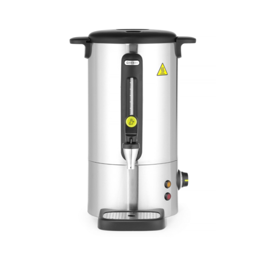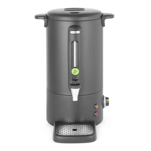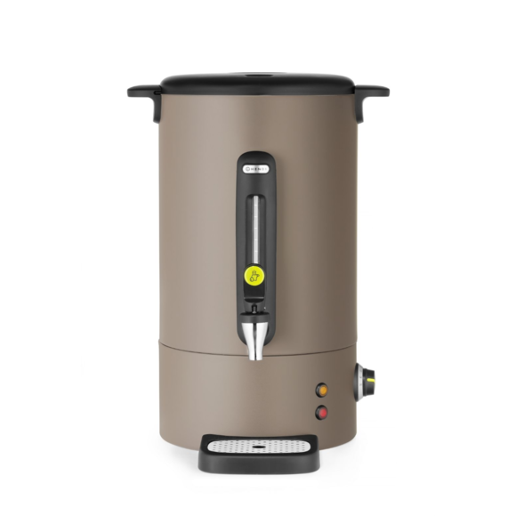 Denna hetvattenkokare Uniq från Hendi, designad av Bronwasser, kombinerar elegans och funktionalitet i en modern form. Tillverkad i rostfritt stål med stilren taupe-finish gör den sig perfekt på bufféer och barer. Den har droppfri kran, magnetisk droppbricka och automatisk varmhållning, vilket säkerställer enkel och ren servering.