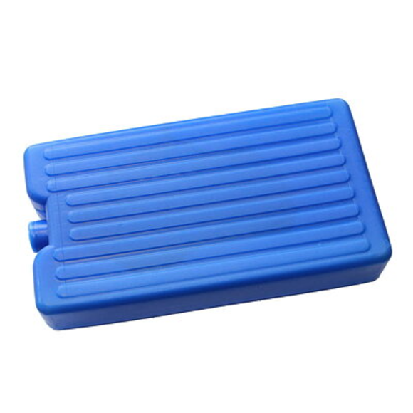 En blå rektangulär kylklamp från CJA fylld med vätska som håller kvar kylan länge.