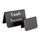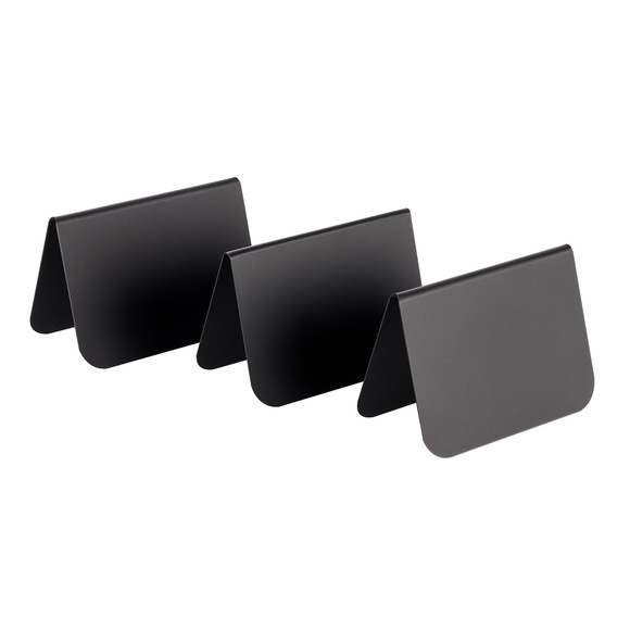 Tidlösa och stilrena bordsskyltar från APS. De enkla skyltarna är gjorda i PVC och har en mattsvart yta som passar in på alla dukningar och i alla miljöer. De multifunktionella skyltarna kan användas vid bordsbokningar, placeringar eller för att beskriva tex bakverk på diverse restaurang, hotell eller café. Skyltarna är i ett hårt material som är vikt, vilket får dem att stå stabilt och stadigt.