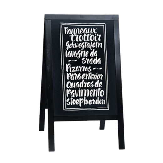 Din bästa säljaren tar aldrig semester! Gatuprataren Sign från Promotion lockar in kunder hela dagen. Den är tillverkad av kraftiga rör i pulverlackerad stålplåt vilket gör den otroligt tålig, även för utomhusbruk. Dessutom får den en förlängd livslängd. Gatuprataren är det perfekta sättet att förmedla och kommunicera budskap till förbipasserande. Med skrivfolie på ryggplåten kan du texta direkt på gatuprataren med griffelpennor.
