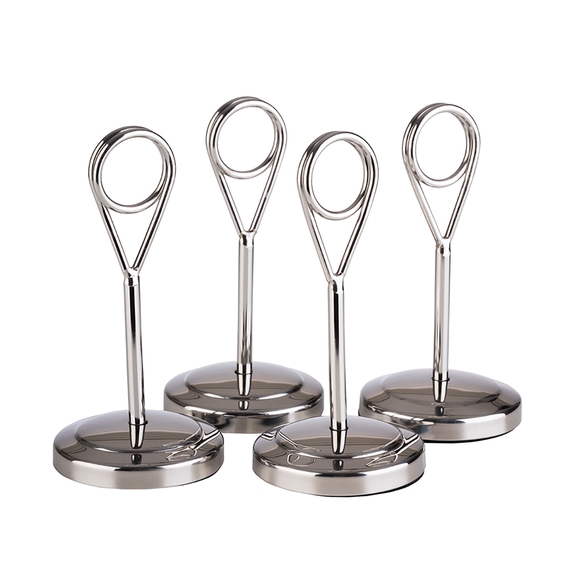 Menyhållare med ring i 4-pack från APS. Hållarna är enkla att använda och passar perfekt både för nummerskyltar vid bordsservering, menyblad på bardisken och för att förmedla vad som serveras på buffén. Perfekta för restauranger, barer, caféer och hotell.
