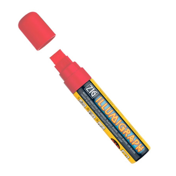 Vattenlöslig griffelpenna i röd färg från Illumigraph. Pennan har en rakt skuren spets och med sitt bekväma grepp är den otroligt enkel att använda för att skapa snygga texter på griffeltavlan. Färgen från pennan kan snabbt torkas bort med hjälp av bara vatten - otroligt smidigt! Pennan finns i många olika färger som med fördel kan kombineras med varandra för att skapa unika och färgglada skyltar eller menytavlor.