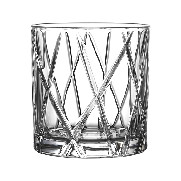 Ett vackert och glatt glas från Orrefors City-serie som ofta används för servering av whiskey men passar lika bra för en somrig lemonad. Glasets yta präglas av oregelbundna skär som gör varje glas unikt och skapar en lekfull stämning på middagsbordet. Detta glas hör hemma i den professionella baren, på den fina restaurangen eller i hemmet. Ett glas svårt att motstå!