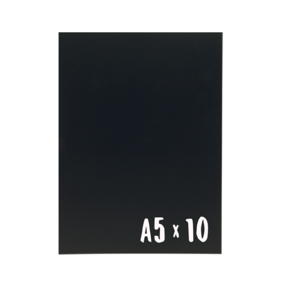 Ett set med griffelskyltar från Securit. Skyltarna har A5-format och är skrivbara på båda sidor. Skyltarna är tillverkade i slagtålig polystyren (PS) med matt svart yta som ger ett stilrent och professionellt intryck. De är enkla att uppdatera med griffelpennor och passar för menyer, priser, erbjudanden och information.
