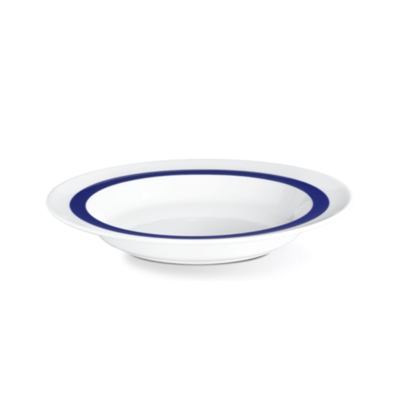 En ergonomiskt utformad halvdjup tallrik ur serien Active från Langenthal, med blå kant som ger tydlig kontrast och underlättar användning. Tallriken har ett utformat stopp mellan innerkant och botten som gör det enklare att samla upp maten på ett säkert sätt. Den konkava kanten ger ett bra grepp och bidrar till stabil hantering. Den intelligenta konstruktionen gör tallriken stapelbar, lätt att transportera och praktisk i daglig användning.