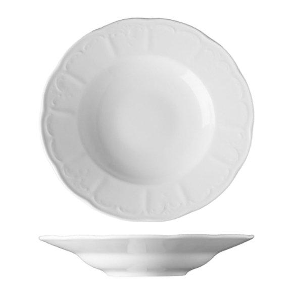 En djup tallrik med vacker relief från Benedikts serie Bellevue. Tallriken är tillverkad av slitstarkt porslin med lång hållbarhet, perfekt för frekvent användning i påfrestande restaurangmiljöer. Med dess djupa och generösa storlek passar tallriken utmärkt till servering av pasta, sallad och soppa.