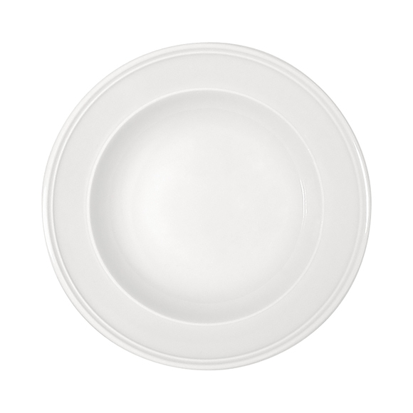 En djup, vacker tallrik från Bauschers eleganta serie Come4Table. Tallriken har en iögonfallande design med en brant och bred bräm som pryds med en subtil relief längs kanten, vilket ger en mycket elegant framtoning på de dukade borden. En, med andra ord, perfekt tallrik för er som vill servera maten på ett extra elegant sätt!