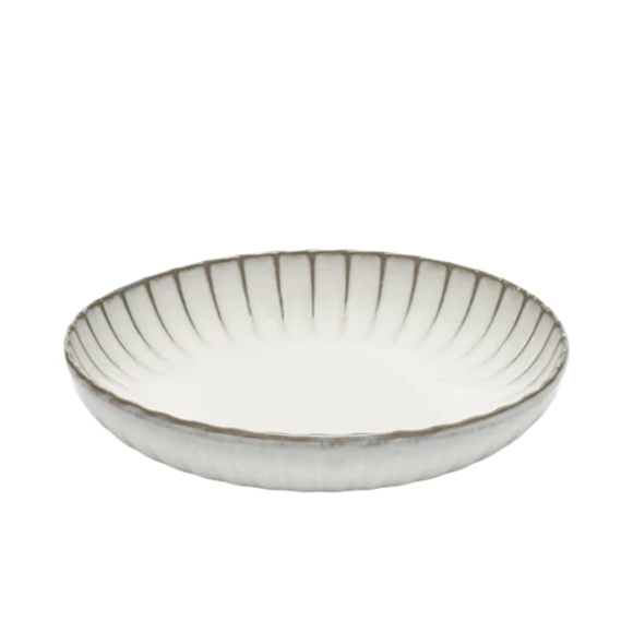 En rustik, djup tallrik från Serax i serien Inku, designad av stjärnkocken Sergio Herman. Tallriken är tillverkat av stengods med en vit glasyr och har en design inspirerad av japanska blommor. En både snygg och hållbar tallrik som passar perfekt för både lunch- och middagsserveringar på restauranger, caféer och hotell.