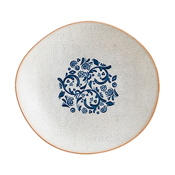 En djup tallrik med traditionell design och hög tålighet från Bonnas serie Viento. Serien erbjuder vackra och unika porslin med handmålad dekor inspirerad av portugisisk kullersten och medelhavets färger. Den djupa tallriken har även en oregelbunden kant som tillför en unik känsla och extra charm. Tallriken har dessutom härdade kanter och en skyddande glasyr över dekoren som säkerställer tålighet mot såväl repor som stötta kanter, perfekt för den påfrestande restaurangmiljön. Detta porslin erbjuder helt enkelt en perfekt kombination av charm och hög tålighet, ett måste för restauranger som vill skapa en återblickande känsla på de dukade borden.