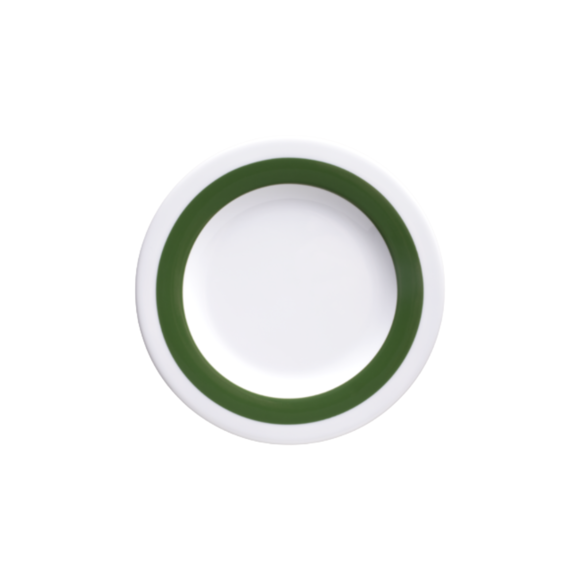 En flat tallrik ur serien Active från Langenthal, utvecklad med fokus på ergonomi och funktion i professionella serveringsmiljöer. Tallriken har en grön kant och en genomtänkt form med ett integrerat stopp mellan innerkant och botten, vilket underlättar säker och kontrollerad insamling av maten. Den intelligenta utformningen ger god staplingsbarhet, stabil transport och smidig hantering i vardagen.