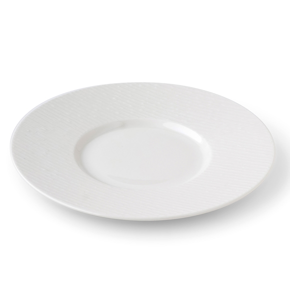 Elegant tallrik med extra bred bräm från Figgjo i serien Bris. Tallriken är gjord av hållbart porslin vilket ger hög slitstyrka och tålighet. Denna modell skapar vackra serveringar av varmrätter där den breda brämen ramar in uppläggningen på ett elegant vis. Perfekt för restauranger, caféer och hotell!