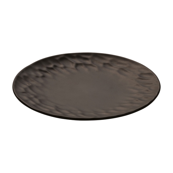 En unik och tilltalande tallrik från Playgrounds serie Carved. Den rustika tallriken är platt och har en chockladbrun matt yta. Längs med tallrikens yttre har porslinet ett ojämnt och buckligt mönster, vilket gör denna mycket egen. Den vackra tallriken kan även användas som fat för uppläggning.