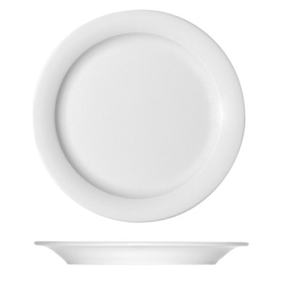 En enkel och tidlös tallrik från Bauschers serie Dimension. Den vita tallriken är platt i glansigt porslin. Tallriken har en bräm som är rundad och lite upphöjd. Tallriken är främst tillämpad för servering av huvudrätter.