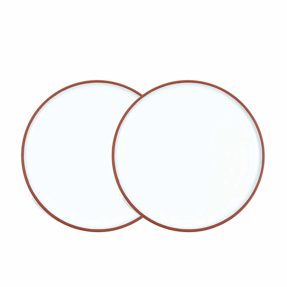 Tallrikar från Vaidava Ceramics serie Earth, som kombinerar lettisk keramiktradition med minimalistisk nordisk design. Seriens porslin är tillverkade av lettisk röd lera, har en vit blyfri glasyr på insidan och en lätt polerad utsida. Perfekta tallrikar för servering av allt från aptitretare till desserter!