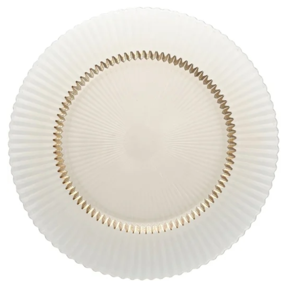 Spektakulär tallrik i glas från Fortessas serie Archie. Denna tallrik är rund med en räfflad yta och en vacker guldig nyans. Tallriken passar utmärkt för servering av varmrätter eller chark. Den är tillverkad i glas vilket ger en exklusiv känsla vid servering – perfekt för restauranger och bistros som vill ha en unik servis!