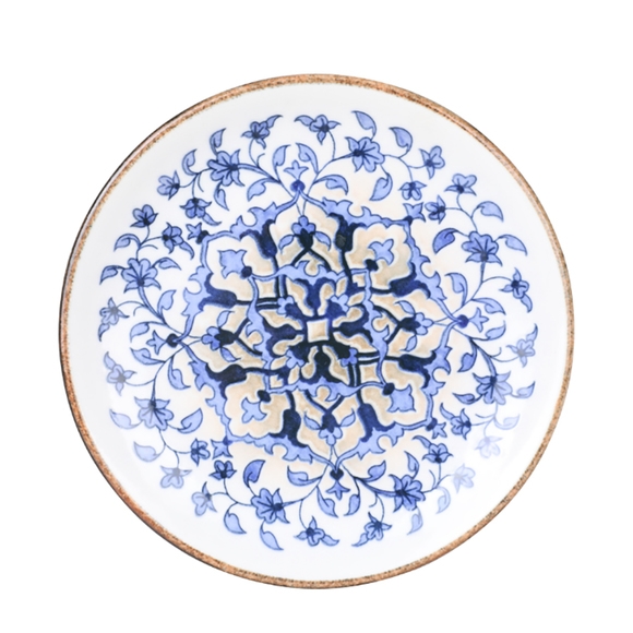 Mindre tallrik/ assiett från Blochos spektakulära serie Kratos. Tallrikens högkvalitativa porslin pryds vackert av ett blåblommigt mönster som inspirerats av medelhavet. Denna mindre modell passar perfekt för servering av mindre förrätter eller desserter och kommer med all säkerhet bidra till en härlig servering.