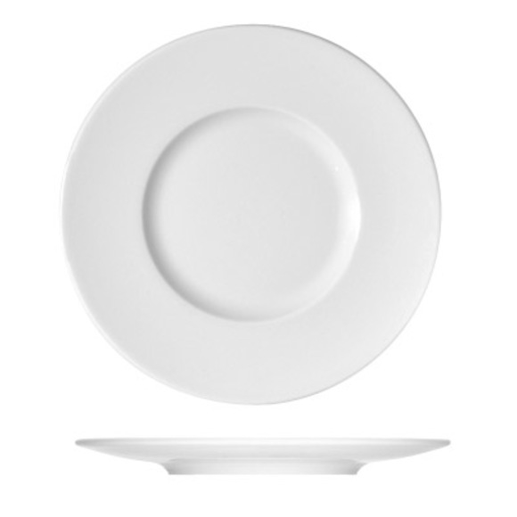 En modern och stilren tallrik från Bauschers serie Maitre. Tallriken är vit och platt med en extra bred bräm. Den tidlösa tallriken passar in på alla dukningar samt vid alla tillställningar.