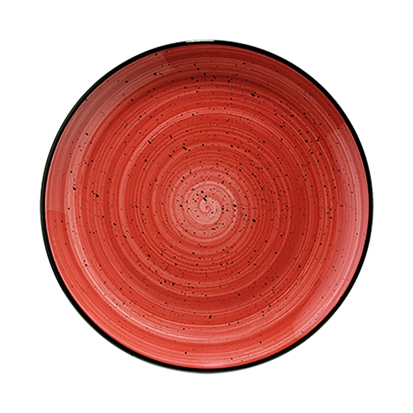 En unik och tilltalande tallrik från Bonnas serie Passion. Den brandröda tallriken har en svart kant och svarta prickar som asymmetriskt är utsprida. Den platta tallriken är i en mindre modell och passar till mindre rätter som tapas, förrätter och desserter.