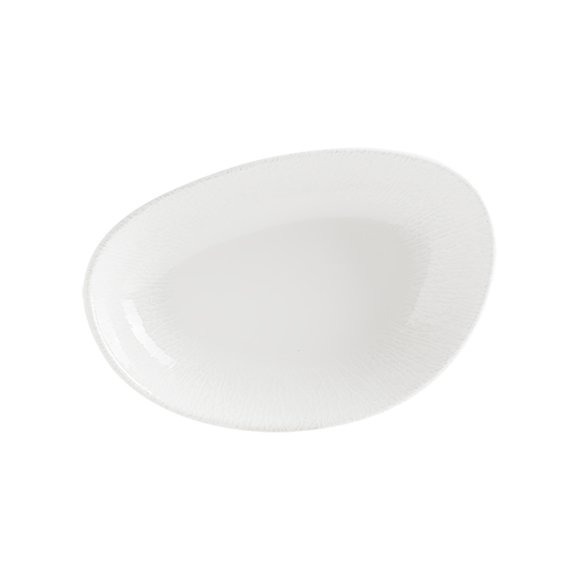 Oval tallrik från Bonnas serie Radix Vago. Denna tallrik passar utmärkt för att skapa estetiskt tilltalande uppläggningar och serveringar av både förrätter och desserter. Tallriken är tillverkad i högkvalitativt porslin vilket ger både slit- och reptåliga egenskaper som passar väl in i restaurang-, hotell-, och cateringverksamheter. Den är dessutom diskmaskinsäker och enkel att rengöra.