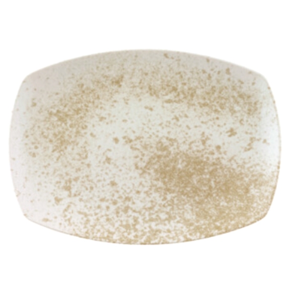 En unik och vacker tallrik från Bauschers serie Sandstone. Den platta och retangulära tallriken har ingen bräm och är i färgen Beige. Det är en benvit färg som täcker hela tallriken med beiga partier som är utspritt placerade. Tallriken sticker ut och höjer därmed alla dukningar. Den kan användas vid både bordservering och som uppläggningsfat.