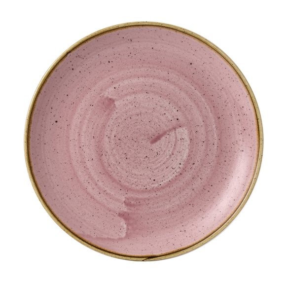 En rosa tilltalande tallrik från Churchills serie Stonecast Petal. Tallriken är i en mysig rosa färg med svarta stänk som skapar en varm känsla runt stengodset. Modellen är flat vilket gör att den är lämplig att servera allt från varmrätter till frukost på.