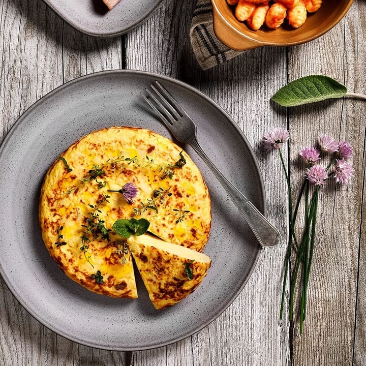 En blå tallrik från Tognanas rustika serie Terracotta, framtagen av högkvalitativt porslin. Med hög slitstyrka och motståndskraft mot repor är tallriken idealisk för daglig användning. Tallrikens flata design och större storlek gör den passande för servering av både lunch- och middagsrätter på restaurang.