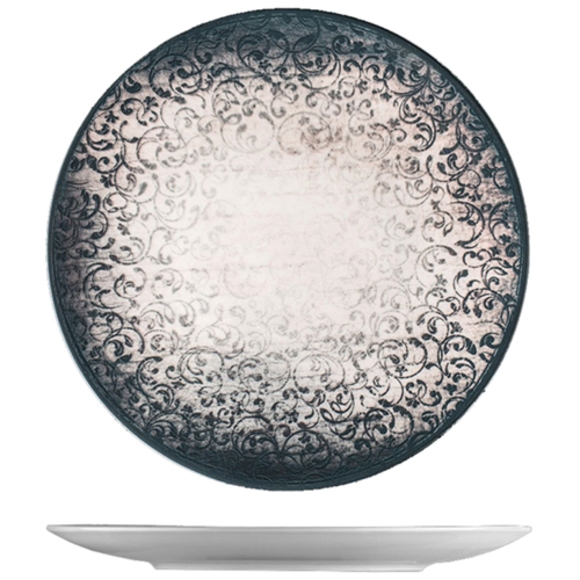 Tallrik Vintage flat 30cm från Lilien är en platt tallrik med en vacker deisgin som sticker ut tack vare det eleganta mönstret. Tallriken är tillverkad för att hålla i den hårda restaurangmiljön. Den är motståndskraftig och håller för bruk i ugn, mikrovågsugn och disk i diskmaskin. Tallriken finns även i andra storlekar.