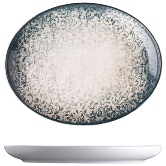 Tallrik Vintage oval 28cm från Lilien är en oval tallrik med en vacker deisgin som sticker ut tack vare det eleganta mönstret. Tallriken är tillverkad för att hålla i den hårda restaurangmiljön. Den är motståndskraftig och håller för bruk i ugn, mikrovågsugn och disk i diskmaskin. Tallriken finns även i andra storlekar.