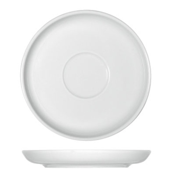 Ett kaffefat från Bauschers serie 6200. Detta fat tillhör kopparna ur samma serie. Fatet är tidlöst och stilrent i vitt glansigt porslin. Kaffefatet är inte helt platt utan upphöjt i kanterna. Denna serie passar till alla dukningar och tillställningar.