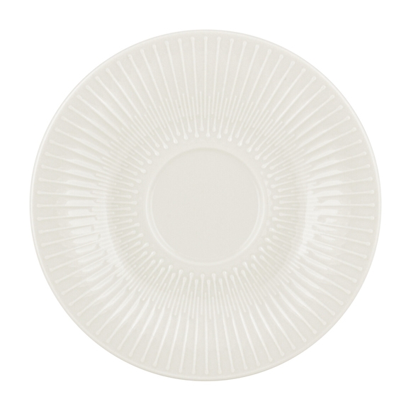 Ett elegant och vackert kaffefat från Schönwalds serie Vibes. Det smakfulla fatet är vitt med ett strukturerat mönster längs med de breda kanterna. Fatet hör ihop med seriens tillhörande koppar. Detta passar tack vare sin lyxiga design in på de fina fiken och caféerna.