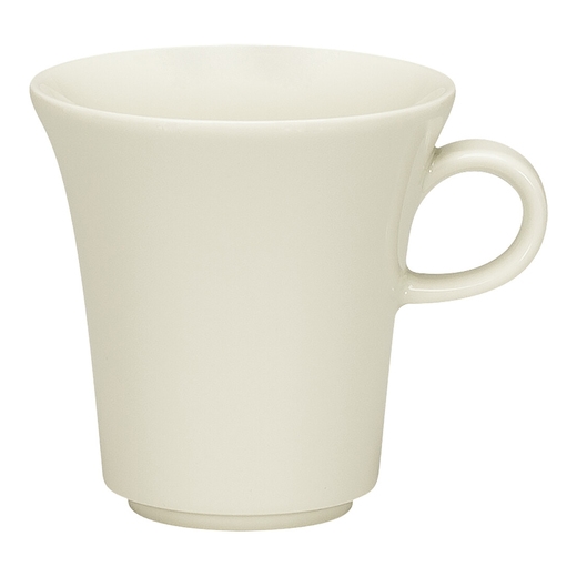 En elegant och stilren kaffekopp från Schönwalds serie Generation. Den moderna koppen är anpassad för en mindre kopp kaffe eller andra varma drycker. Koppen har höga kanter och en tulpanformad öppning som gör behållaren mycket sofistikerad. Längs kanten sitter ett mindre handtag som underlättar när koppen ska bäras. Detta porslin bör användas på de restauranger och caféer